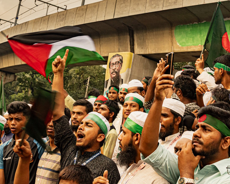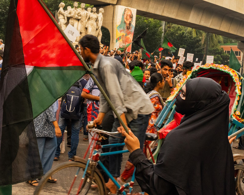 バングラデシュ・ダッカでの7月革命への追悼デモとパレスチナ支援の民衆運動を取材した。